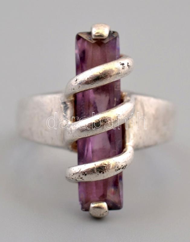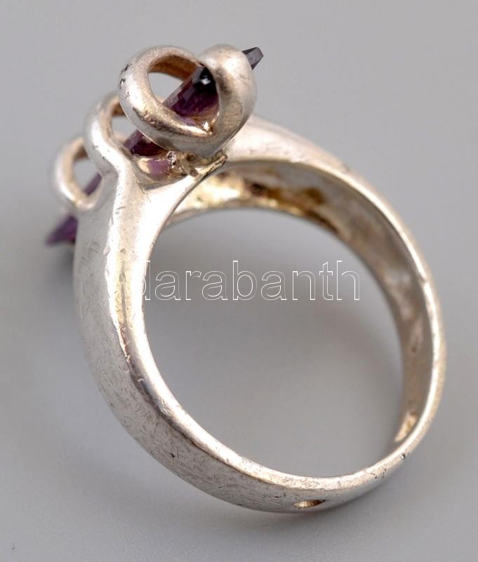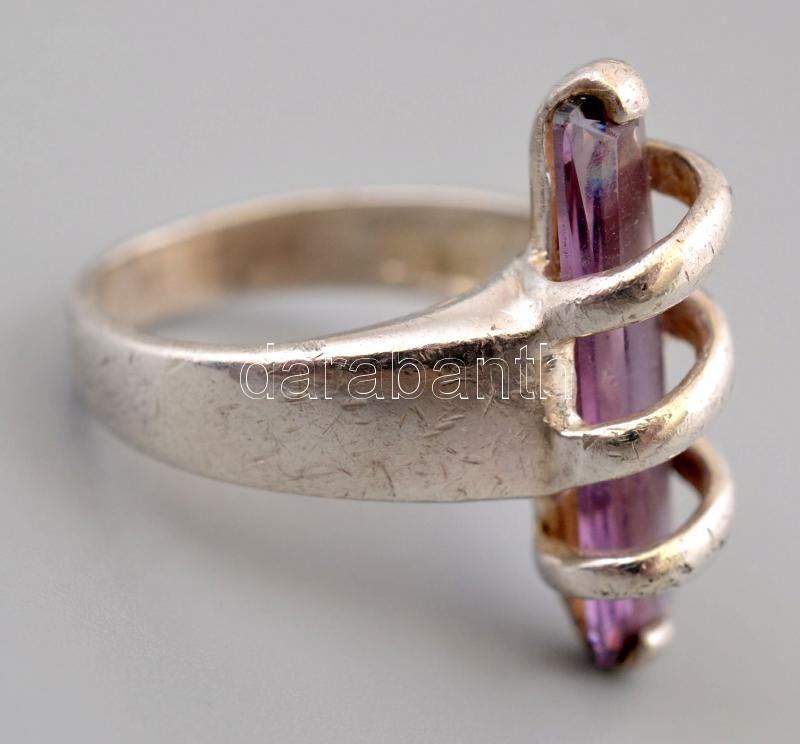 Ezüst(Ag) gyűrű, ametiszttel, jelzett, méret: 52, nettó: 5,8 g