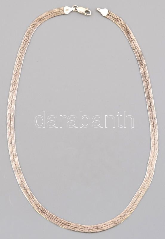 Ezüst(Ag) hullámmintás lapos kígyó nyaklánc, jelzett, h: 42,5 cm, nett...