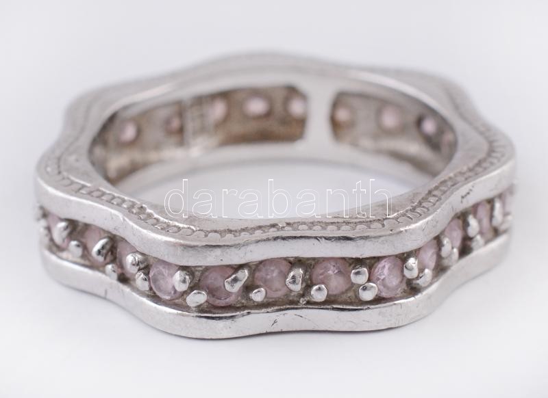 Ezüst(Ag) hullámos gyűrű, rózsaszín kövekkel, jelzett, méret: 50, brut...