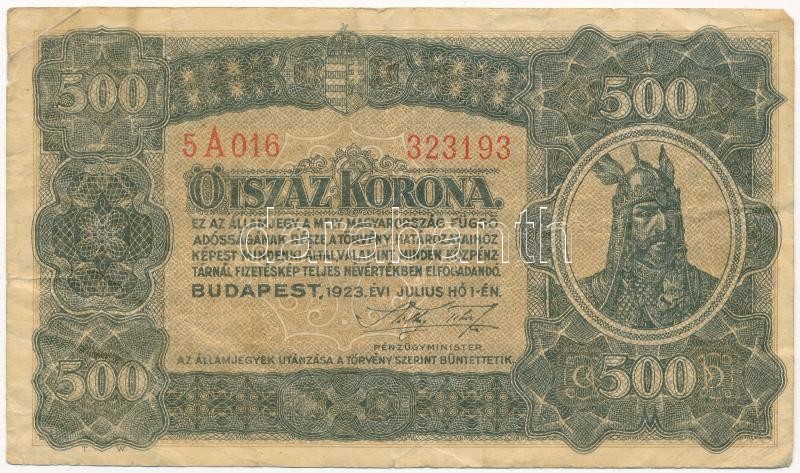 1923. 500K nyomdahely jelölés nélkül T:III