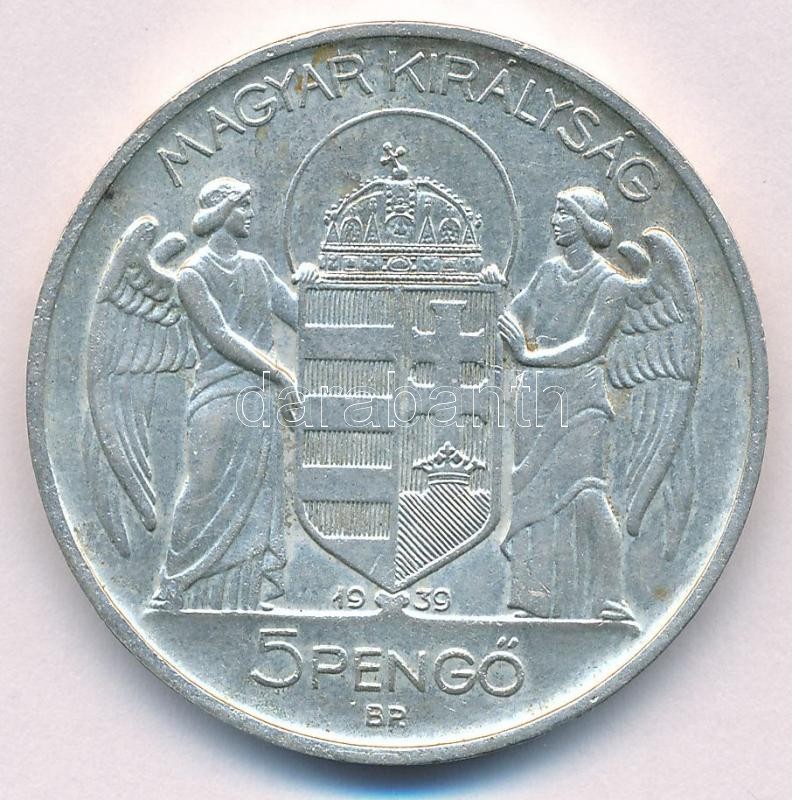 https://www.darabanth.com/en/365-Online-auction/365.0/Numismatics/Hungarian-coins-and-coins-with-Hungarian-mint-marks~2000008/1939-5P-Ag-Horthy-balra-T1-patina-Adamo-P82~II2115551