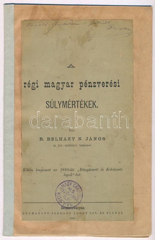 https://www.darabanth.com/en/365-Online-auction/365.0/Numismatics/Numismatics-Literature~2000002/B-Belhazy-N-Janos-A-regi-magyar-penzveresi-sulymertekekSelmecbanya-1889-ujrakotve~II2115335