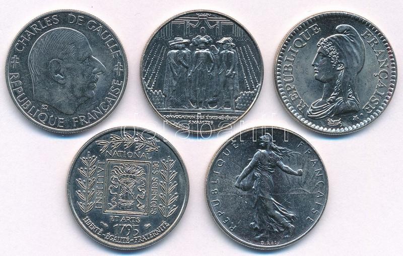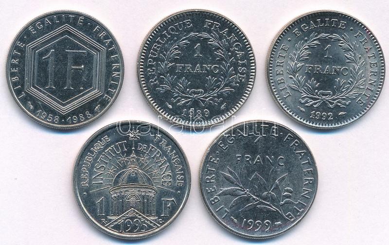 Franciaország 1988-1999. 1Fr Ni (5xklf) forgalmi emlékkiadások "Charles de Gaulle", "200 éves a rendi gyűlés", "200 éves az első Francia Köztársaság" "200 éves a francia intézmény" T:1,1-