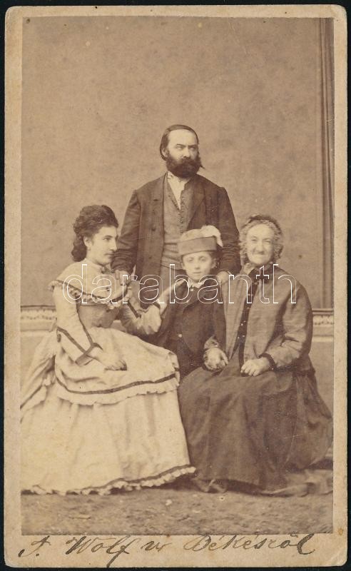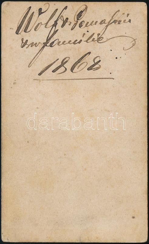 1868 A Wolf család Békésről, keményhátú fotó, 10×6 cm