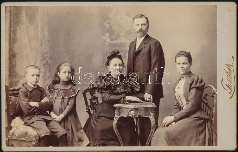 1900 Budapest, Goszleth István (1850-1913) budapesti fényképész műtermében készült, hátoldalán nevesített, vintage családi fotó, 13,5x21 cm