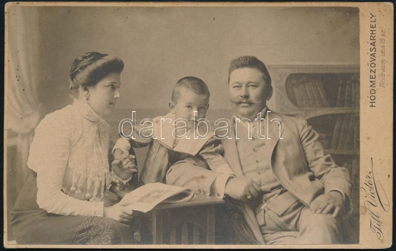 cca 1900 Család keményhátú fotója, Till Victor hódmezővásárhelyi műter...