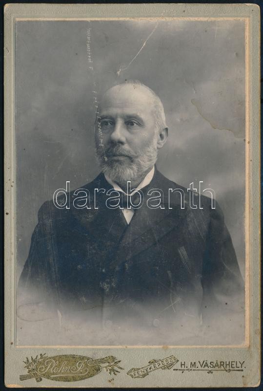 cca 1900 Férfi keményhátú fotója, Plohn J. hódmezővásárhelyi műtermébő...