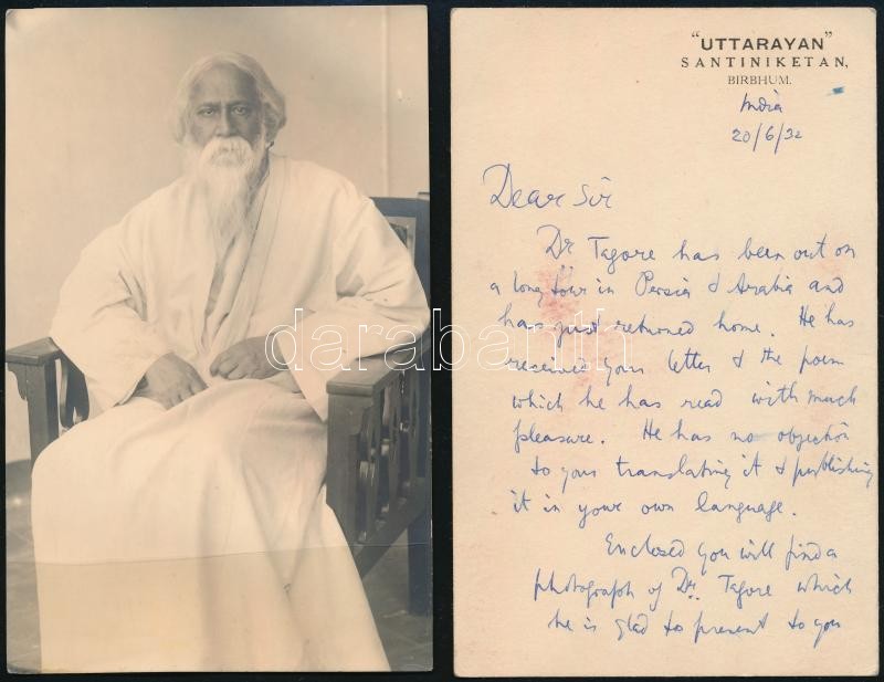 cca 1920 Rabindranáth Tagore (1861-1941) indiai író, kötlő fotója hozz... https://www.darabanth.com/en/365-Online-auction/365.0/Photography/Photo~500033/cca-1920-Rabindranath-Tagore-1861-1941-indiai-iro-kotlo-fotoja-hozza-tartozo-angol-nyelvC5~II2110456