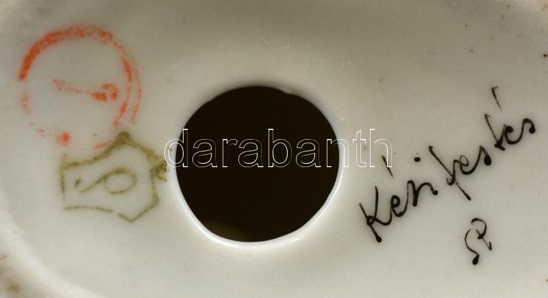 Drasche porcelán szürke kutya figura, kézzel festett, jelzett, hibátla...