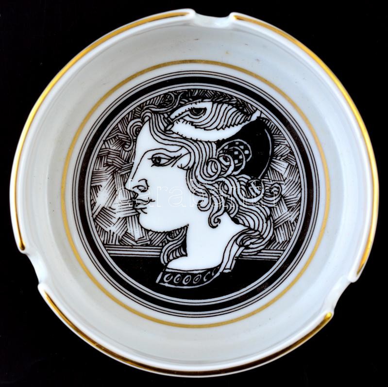 Hollóházi Szász Endre tervezte hamutál, matricás, jelzett, hibátlan d:...