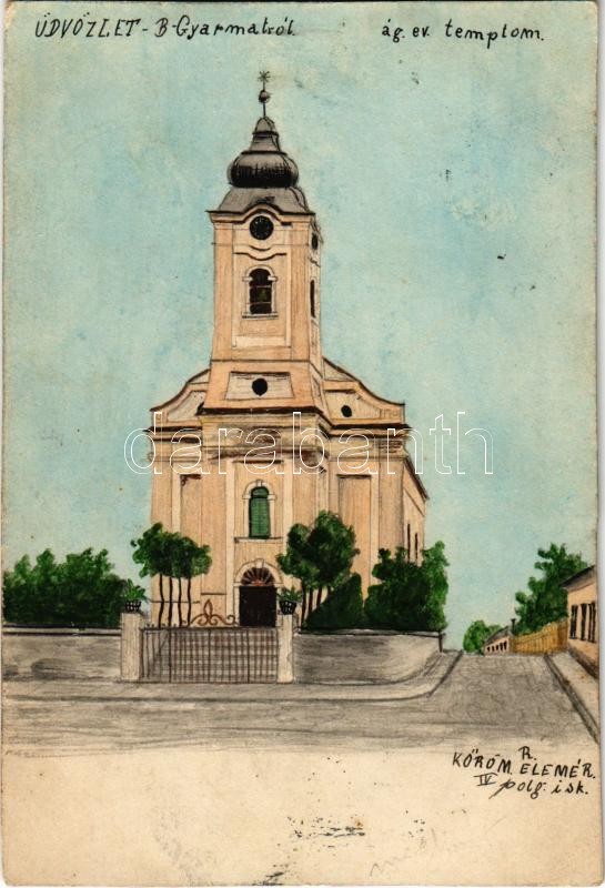 1901 Balassagyarmat, Ágostai evangélikus templom. Kézzel festett / hand-painted s: Köröm Elemér