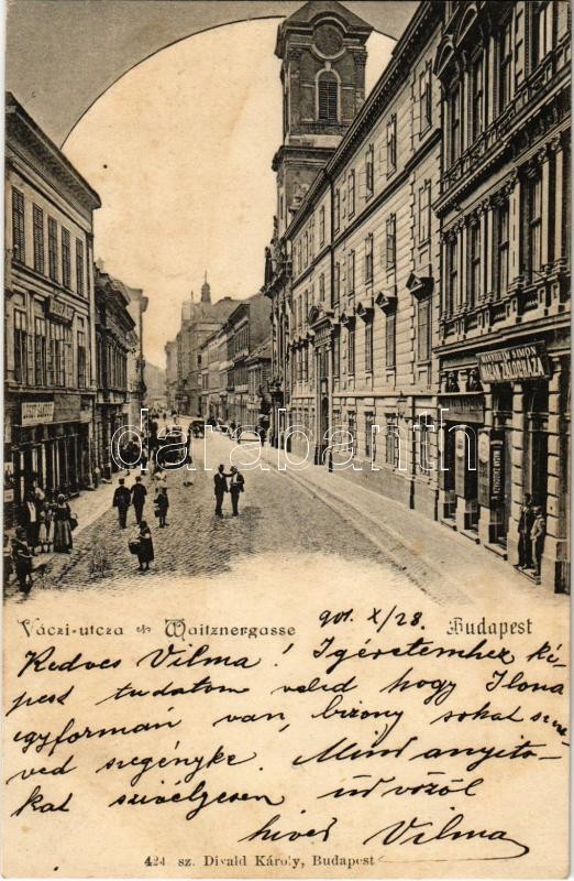 1901 Budapest V. Váci utca, Mannheim Simon Magánzálogháza, Luszt Sándor és Keszler József üzlete / Waitznergasse. Divald Károly 424. sz.