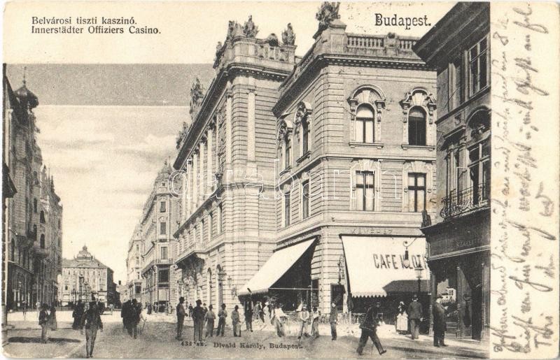 1904 Budapest V. Belvárosi tiszti kaszinó, Café Klotild kávéház. Divald Károly 432. sz.