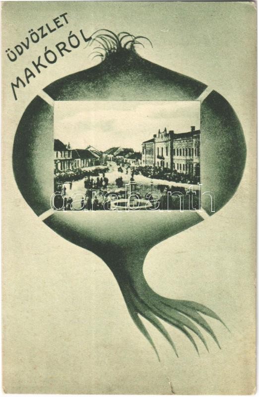 1928 Makó, Fő tér, Városháza, hagymás montázs. Vészi Dezső kiadása (sz...