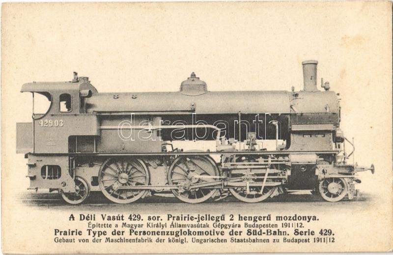 A Déli Vasút 429. sor. Prairie-jellegű 2 hengerű mozdonya. 1918. A "Gőzmozdony" kiadása / Südbahn-Gesellschaft, locomotive