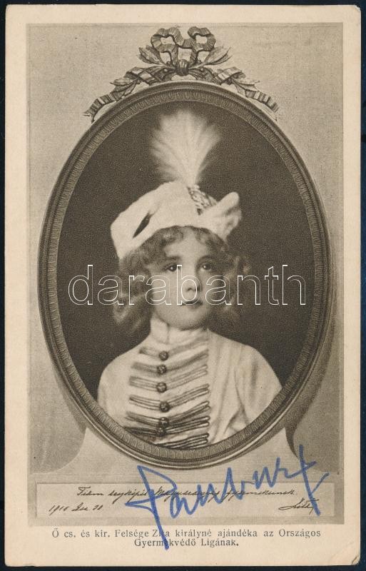 Habsburg Ottó (1912-2011) saját kezű aláírása az őt ábrázoló régi képeslapon