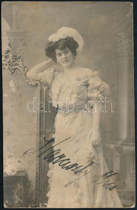 Haraszti Mici (1882-1964) színésznő aláírása az őt ábrázoló fotón
