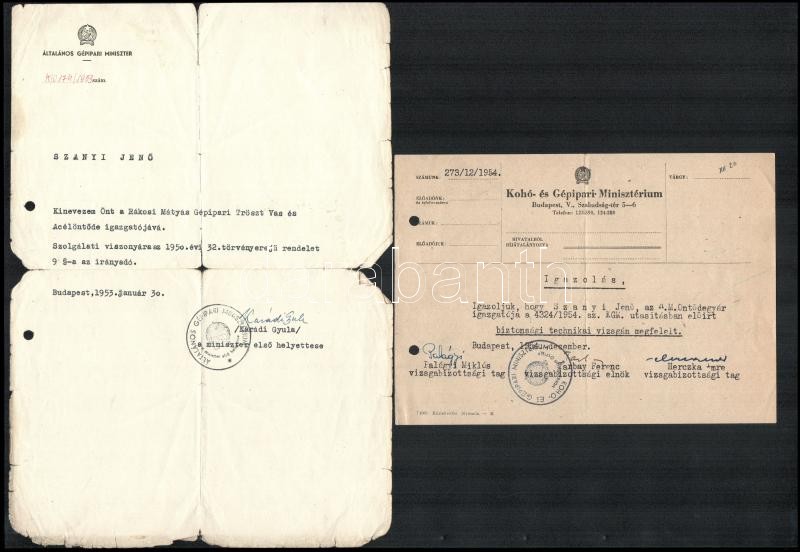 1953-1971 Szanyi Jenő a Rákosi Mátyás Gépipari Tröszt Vas és Acélöntöd... https://www.darabanth.com/en/366-Online-auction/366.0/Art-and-other-collectibles/Documents~500017/1953-1971-Szanyi-Jeno-a-Rakosi-Matyas-Gepipari-Troszt-Vas-es-AcelontodeCsepeli-Vas-es-Ac~II2118145
