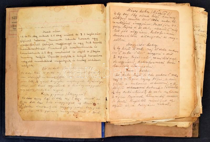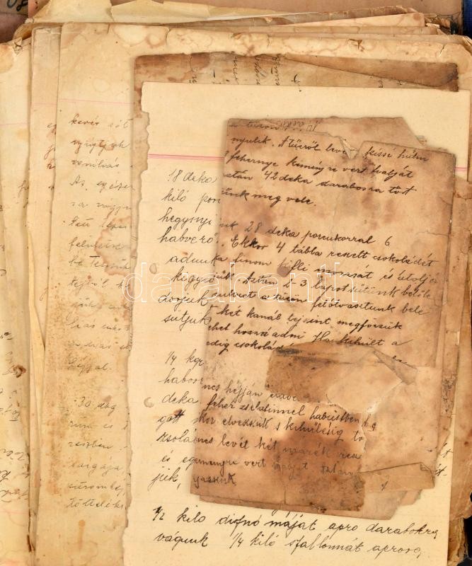 cca 1920-1945 Kb. 100-150 db kézzel írt, háború előtti, döntően süteményes recept füzetben és cetliken