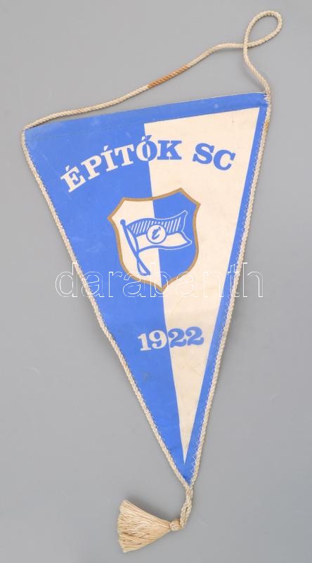 cca 1970-1980 Építők SC zászlója, a hátoldalán aláírásokkal, 34x23 cm