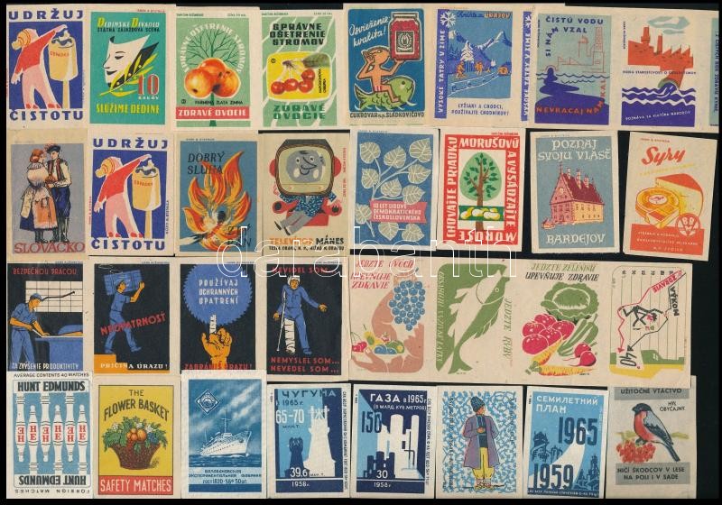 Kb 150 db vegyes külföldi gyufacímke az 1950-es, 1960-as évekből, közte összefüggések is, ömlesztve
