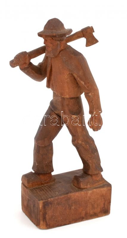 Anri jelzéssel: Favágó. Faragott fa szobor. 19 cm