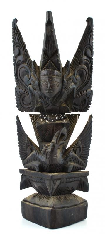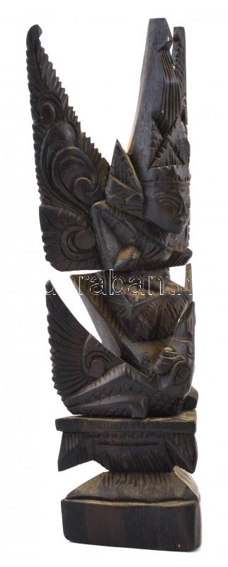 Faragott afrikai fa szobor, istennő és sas gyémánttal 29 cm