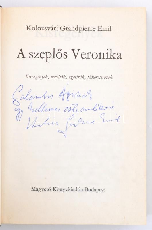 Kolozsvári Grandpierre Emil: A szeplős Veronika. Kisregények, novellák... https://www.darabanth.com/en/366-Online-auction/366.0/Books/Books-Other-rarities~1000018/Kolozsvari-Grandpierre-Emil-A-szeplos-Veronika-Kisregenyek-novellak-szatirak-tukorcsere~II2116320
