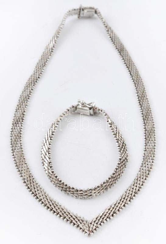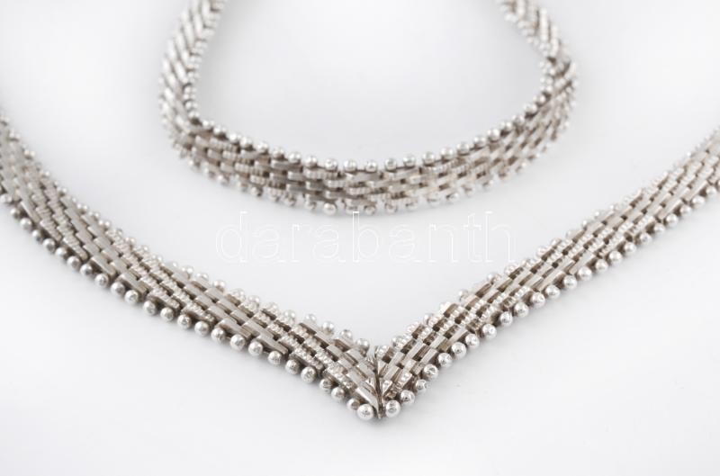 Ezüst(Ag) V-alakú nyakék, és hozzáillő karkötő, jelzett, nettó: 49,6 g