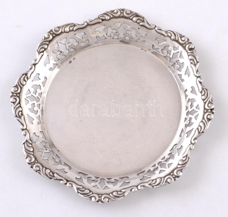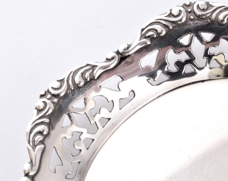 Ezüst(Ag) áttört, kerek tálka, jelzett, d: 10,5 cm, nettó: 44,8 g