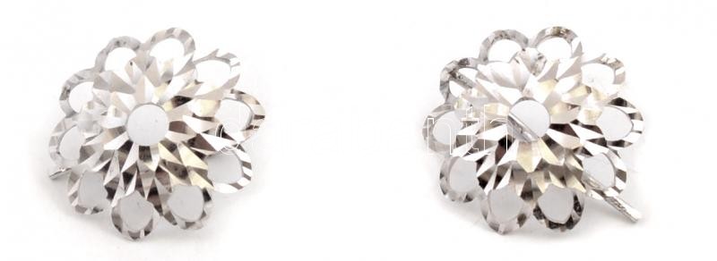 Ezüst(Ag) áttört virágos fülbevalópár, jelzett, d: 1,5 cm, nettó: 1,2 g