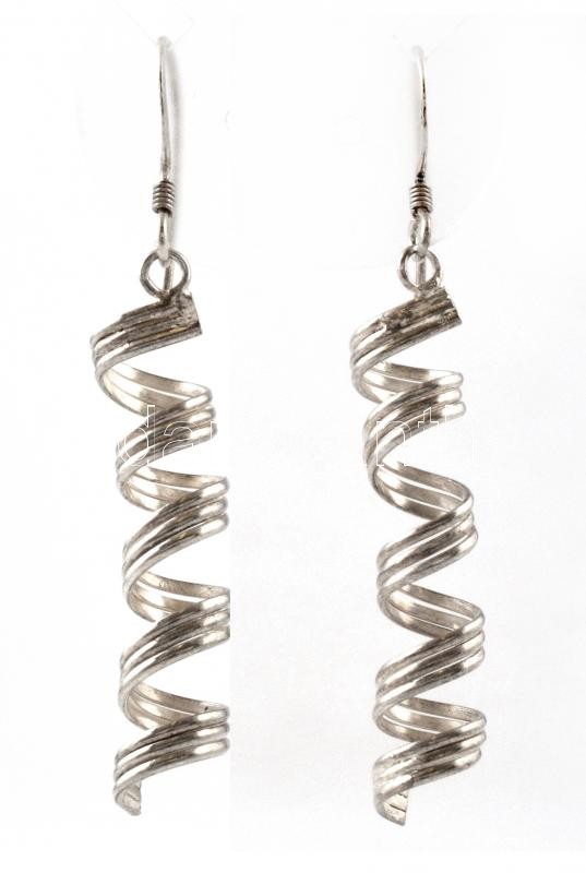 Ezüst(Ag) csavart fülbevalópár, jelzett, h: 3,5 cm, nettó: 2,5 g