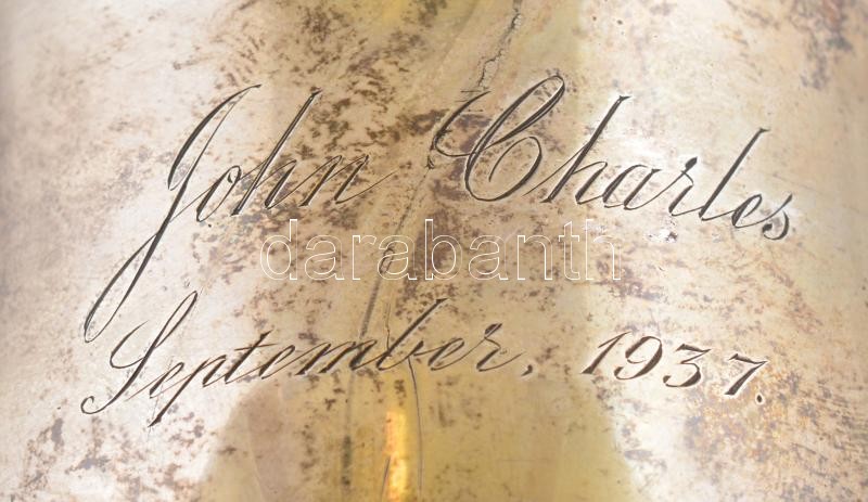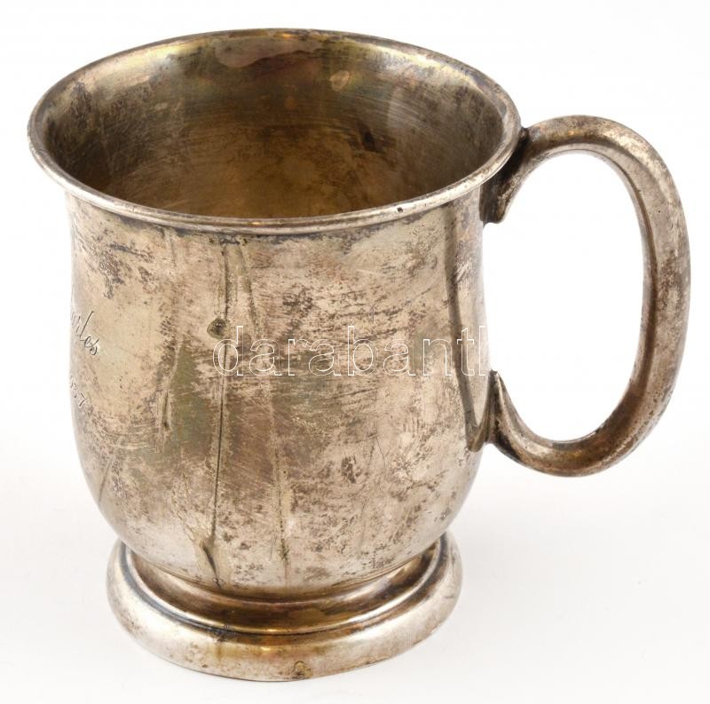 Ezüst(Ag) csésze, gravírozott felirattal, jelzett, m: 7,5 cm, nettó: 1...