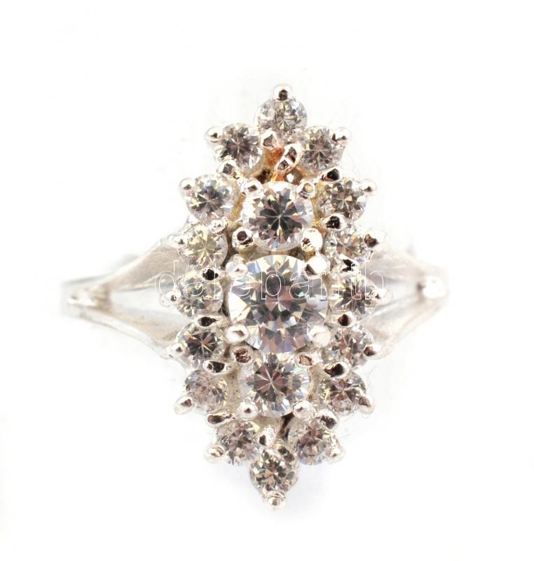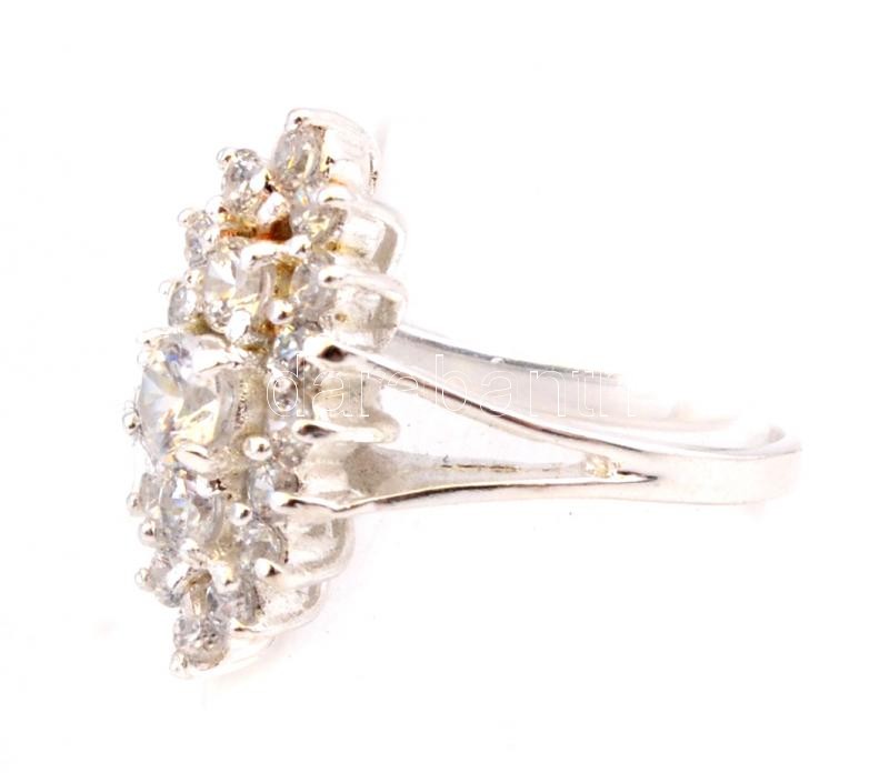 Ezüst(Ag) fehér kövekkel díszített ovális gyűrű, jelzett, méret: 54, b...