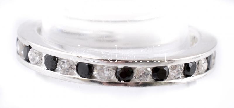 Ezüst(Ag) fekete és fehér kövekkel díszített gyűrű, jelzett, méret: 57...