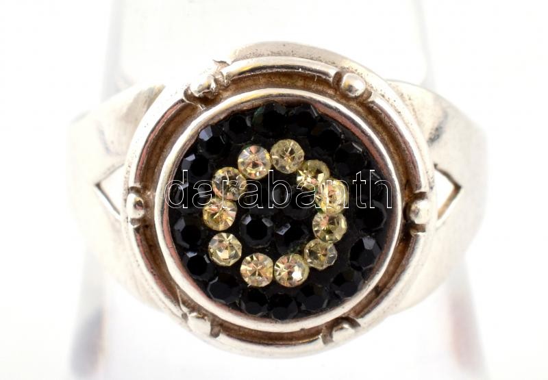 Ezüst(Ag) fekete és fehér strasszokkal díszített gyűrű, jelzett, méret...