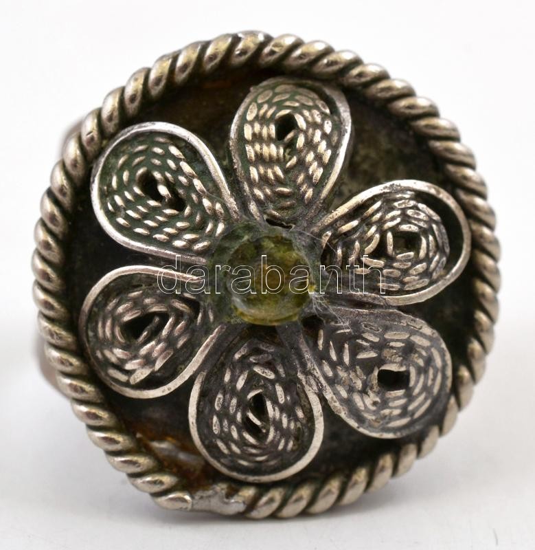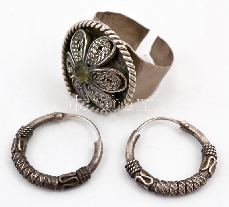 Ezüst(Ag) fülbevalópár, jelzett, d: 1,8 cm, nettó: 3,1 g + bizsu gyűrű