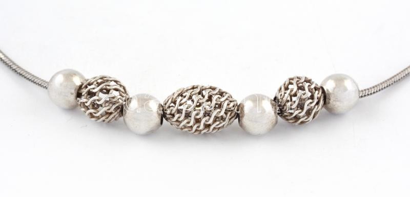 Ezüst(Ag) golyókkal díszített kígyó nyaklánc, jelzett, h: 45 cm, nettó...