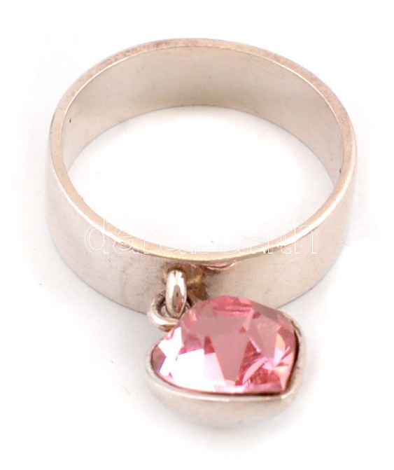 Ezüst(Ag) gyűrű, szívecske függővel, jelzett, méret: 50, bruttó: 4,2 g
