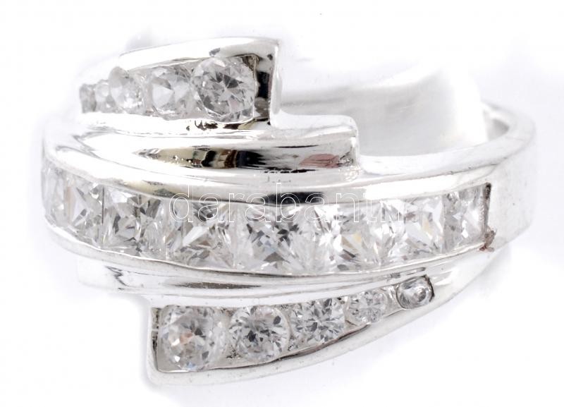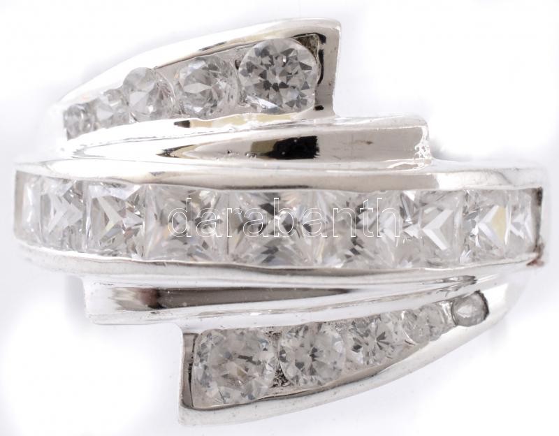 Ezüst(Ag) háromívű köves gyűrű, jelzett, méret: 54, bruttó: 6,4 g