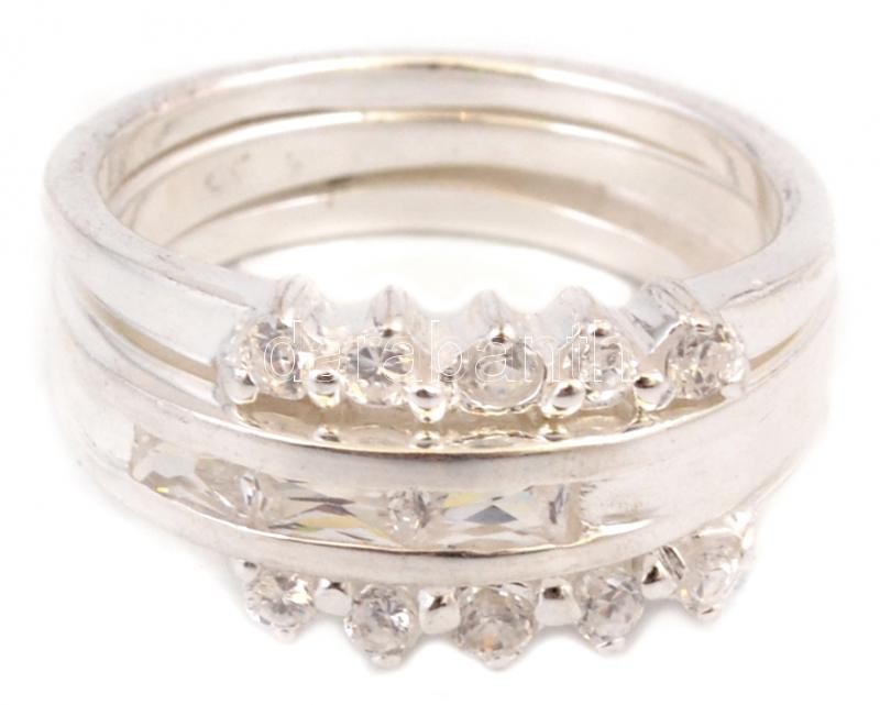 Ezüst(Ag) háromsoros köves gyűrű, jelzett, méret: 56, bruttó: 7,7 g