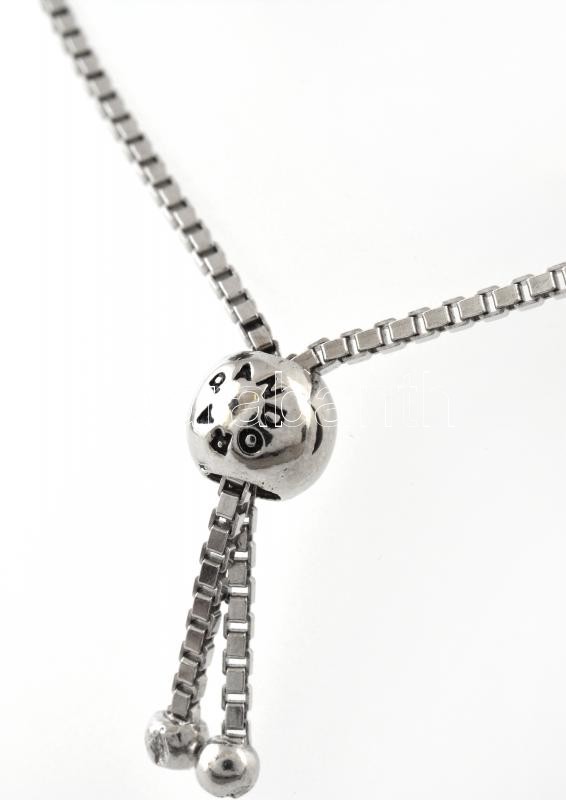 Ezüst(Ag) kék kövekkel díszített karkötő, Pandora jelzéssel, h: 24 cm, bruttó: 4,8 g
