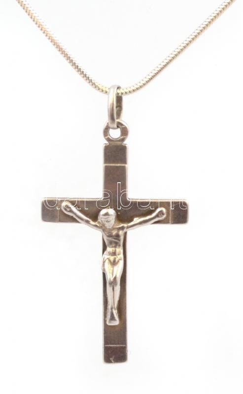 Ezüst(Ag) kígyó nyaklánc, korpuszos kereszt függővel, jelzett, h: 42 cm, 4,2×2,2 cm, nettó: 5,4 g