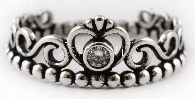 Ezüst(Ag) koronás gyűrű, jelzett, méret: 57, bruttó: 2,1 g