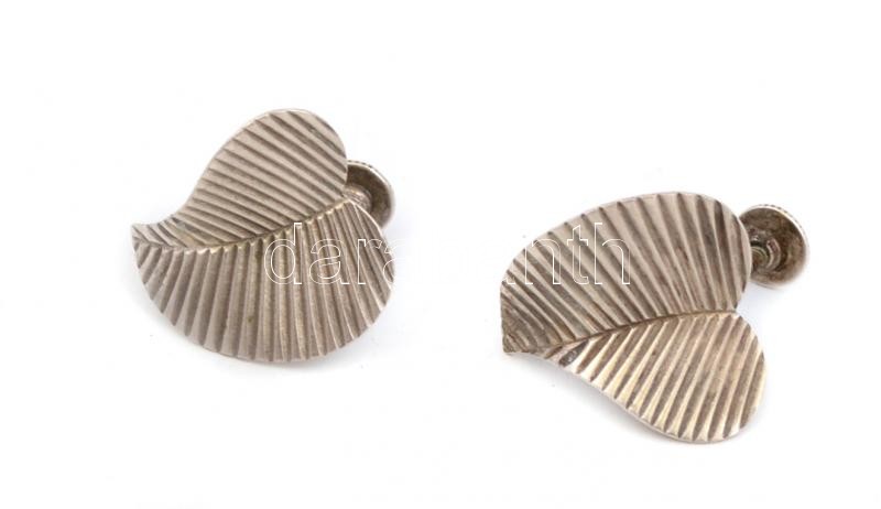 Ezüst(Ag) leveles, csavarós fülbevalópár, jelzett, 2×1,8 cm, nettó: 3,2 g