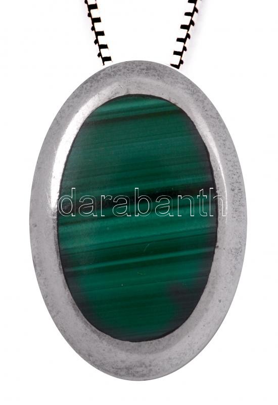 Ezüst(Ag) malachit köves medál, venezianer nyaklánccal, jelzett, h: 46...