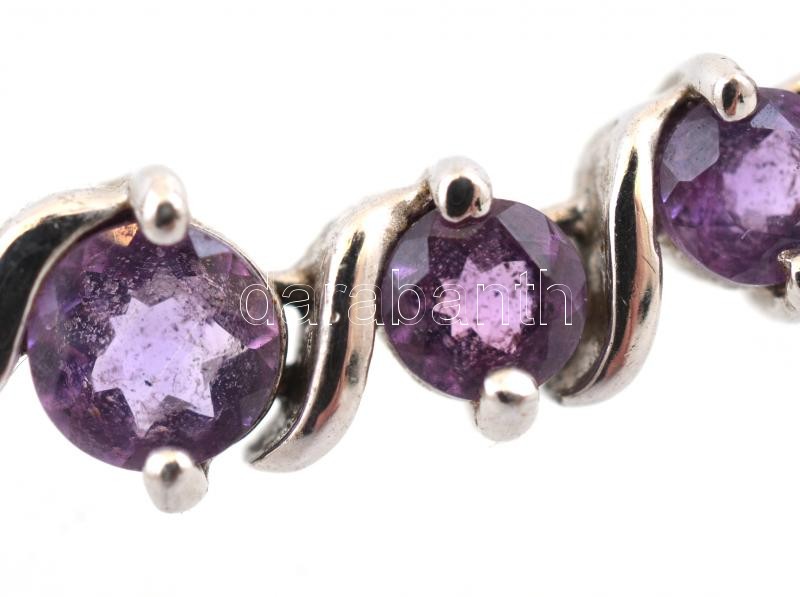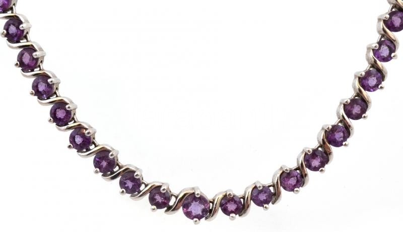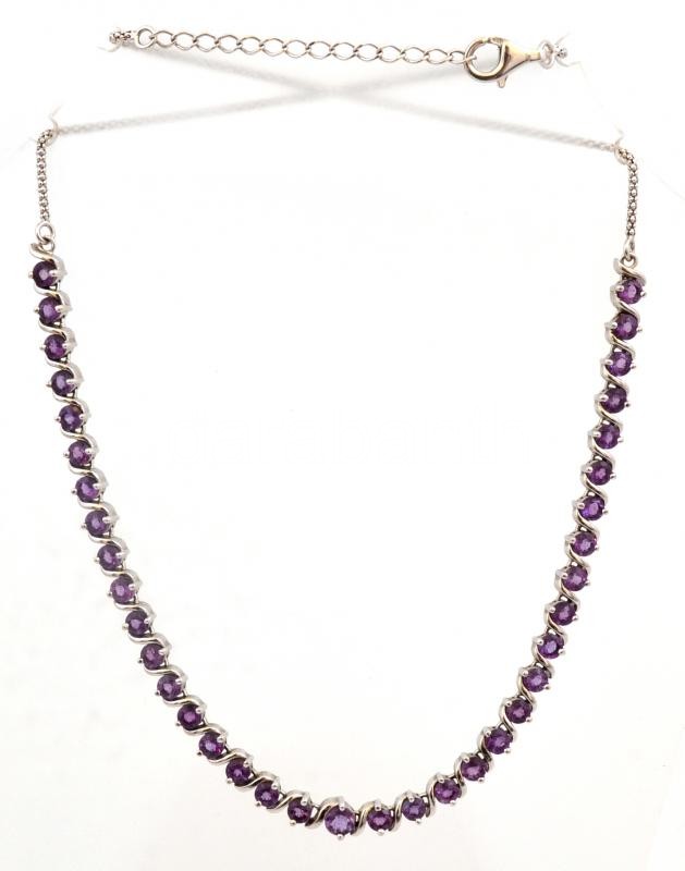 Ezüst(Ag) nyaklánc, lila kövekkel, jelzett, állítható h: max. 50 cm