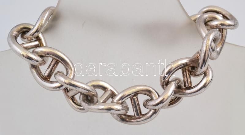 Ezüst(Ag) osztott szemes masszív karlánc, jelzett, h: 17 cm, nettó: 33 g