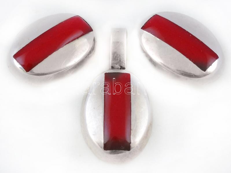 Ezüst(Ag) piros zománccal díszített fülbevalópár, függővel, jelzett, f...
