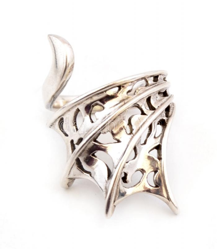 Ezüst(Ag) sárkányszárnyas áttört gyűrű, jelzett, méret: 54, nettó: 7,5...